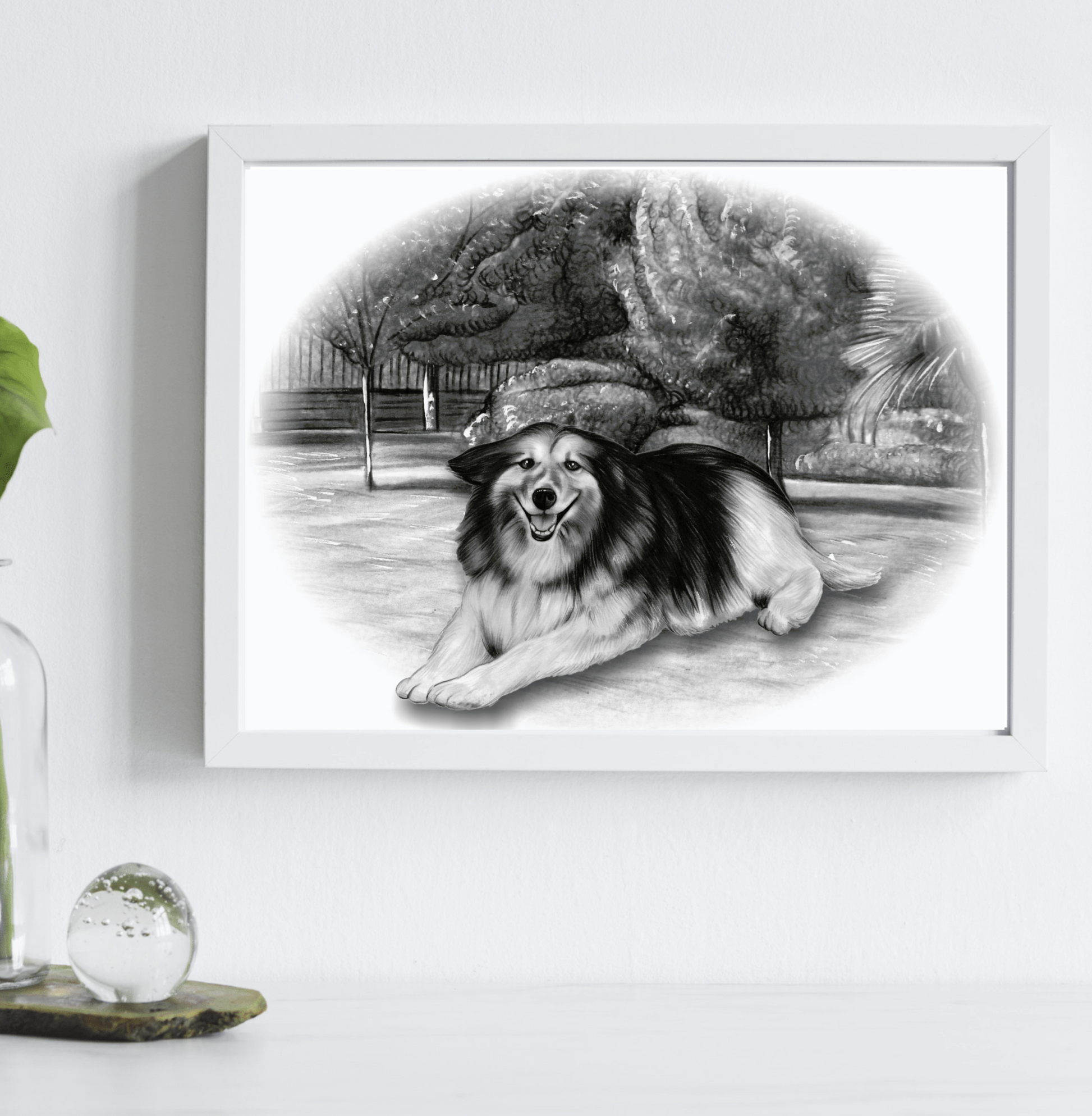 Our black and white portraits are a drawing style that offers a classic look and our lowest cost drawing option. These are particularly suited for more serious or classy drawings or those where we’ve been asked to draw from black & white photos. With this option, we will also draw a detailed background which you should either explain in the instructions or upload a photo example of.